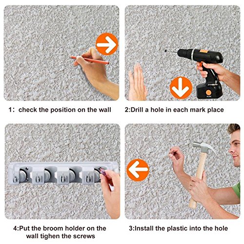 Mop/Broom holder has 4 slots and 5 hooks, Slot rolling balls mechanically regulate to carry each and every take care of’s thickness and grips it securely. Further 6 folding hooks appropriate to hold and cling from falling small hinging equipment, Indian Conventional cushy broom, laborious broom and and so forth..