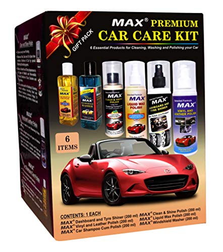 MAX Premium Car Care Kit (Pack of 6 Items of 200 ML Each, 1 Pc Microfiber Cloth 350 GSM, 4 Pcs Foam Applicators and 1 Pc Leather Keychain) for Car Cleaning, Washing, Conditioning, Rubbing and Polishing