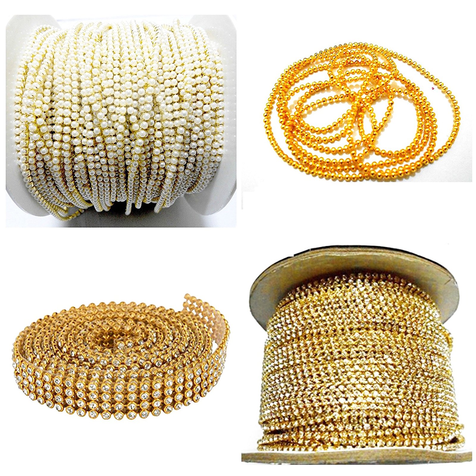 four-line stone lace Duration : 1.25mtr, 1mtr stone chain, 1mtr pearl chain, 1mtr golden ball chain