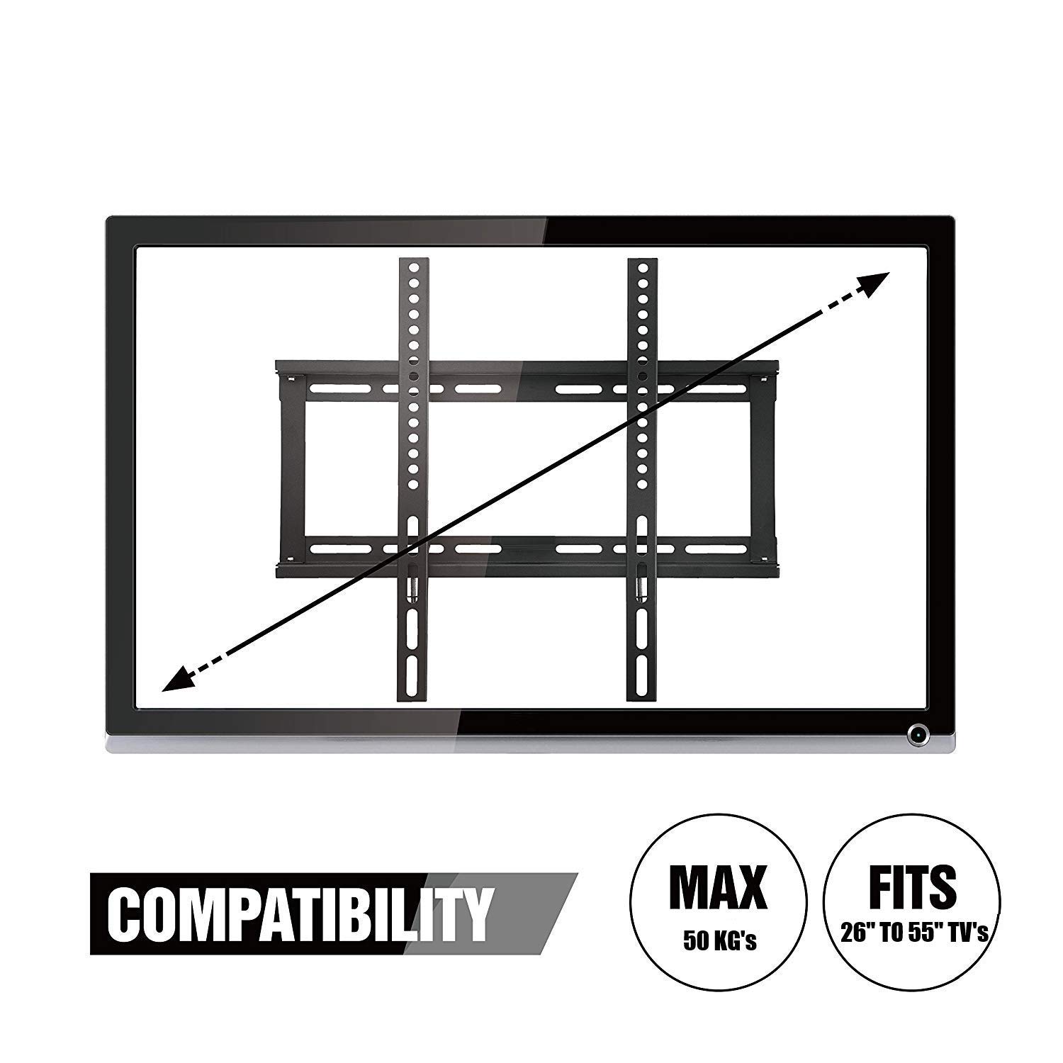 TV Wall Mount : 26″ to fifty five” TV’s (LCD / LED / UHD / QLED / Screens / OLED/ 4K / Plasma / CC-Tv / Good TV’s ) Suitable With All Manufacturers Like : Mi , LG , eAirtec , Sanyo , Kevin , Samsung , Sony , Micromax , TCL , VU , Mitashi , Panasonic , Kodak , Cloud Walker , Shinco , Philips and plenty of extra.