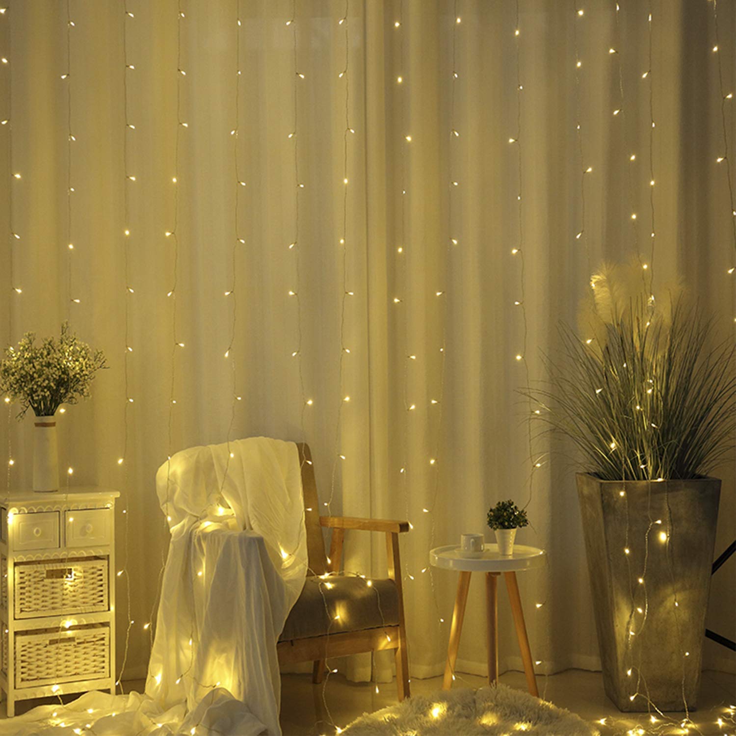 (CURTAIN NOT INCLUDED) SAFE TO USE: This Curtain fairy Mild general have 240 LED small lamps each and every set, spread dimension is 9.8ft x 9.8ft (Period x Width) direct output 29V (protection voltage), UL qualified, in order that the lamps will also be more secure than the common model.