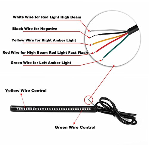 Choice of led’s: 32 mild color: Crimson flash (brake) + Crimson (operating) + yellow (sign) led chip: 3528 (32 leds) duration: 8 inch utilization: Flip/tail/brake/registration code mild voltage: 12v connection: 5 cord arrange: Flooring: Black cord operating mild: White cord brake mild: Crimson cord left Flip sign mild: Inexperienced cord proper Flip sign mild: Yellow cord.