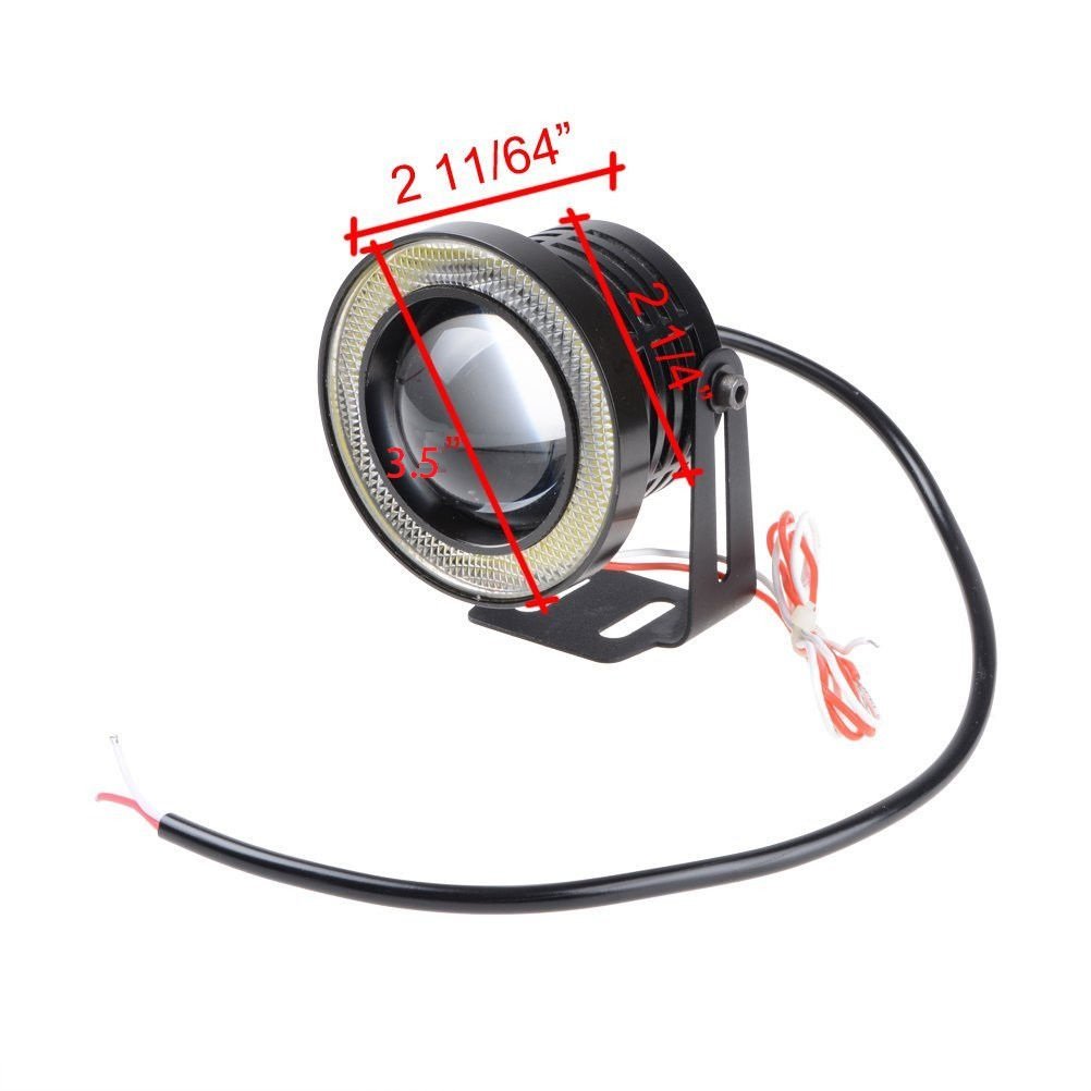 Automotive Automobile 3. five” (FRONT DIA) 2. five” (BACK DIA) WHITE Angel Eye COB LED Using Fog Gentle Paintings Lamp White Specs: *Situation: one hundred% *Measurement: Period: 2 eleven/6″ (five. 5cm) *Diameter Again: 2. five” (6. 4cm) *Colour: Black Housing *Attitude Eye Colour: 6000K Xenon White *Gentle Colour: White *Cord Period: 11 thirteen/sixteen” (30cm) *Wattage: 15W EACH *Running Voltage: 12V *Subject matter: Aluminum Housing + Actual Glass Lens + LED Gentle *Weight: 600g **Water-resistant: Ip65 *Liminance:3200LM *four Wires connection gadget (2 wires for fog Gentle; 2 wires for COB Gentle) Fitment: *Suits for all Automotive, SUV or Truck with the scale of 2. five” (64mm) fog Gentle holes. Pros set up is strongly beneficial to keep away from hassle as a result of green installer, now not a plug and play product, a few abilities and equipment are wanted.