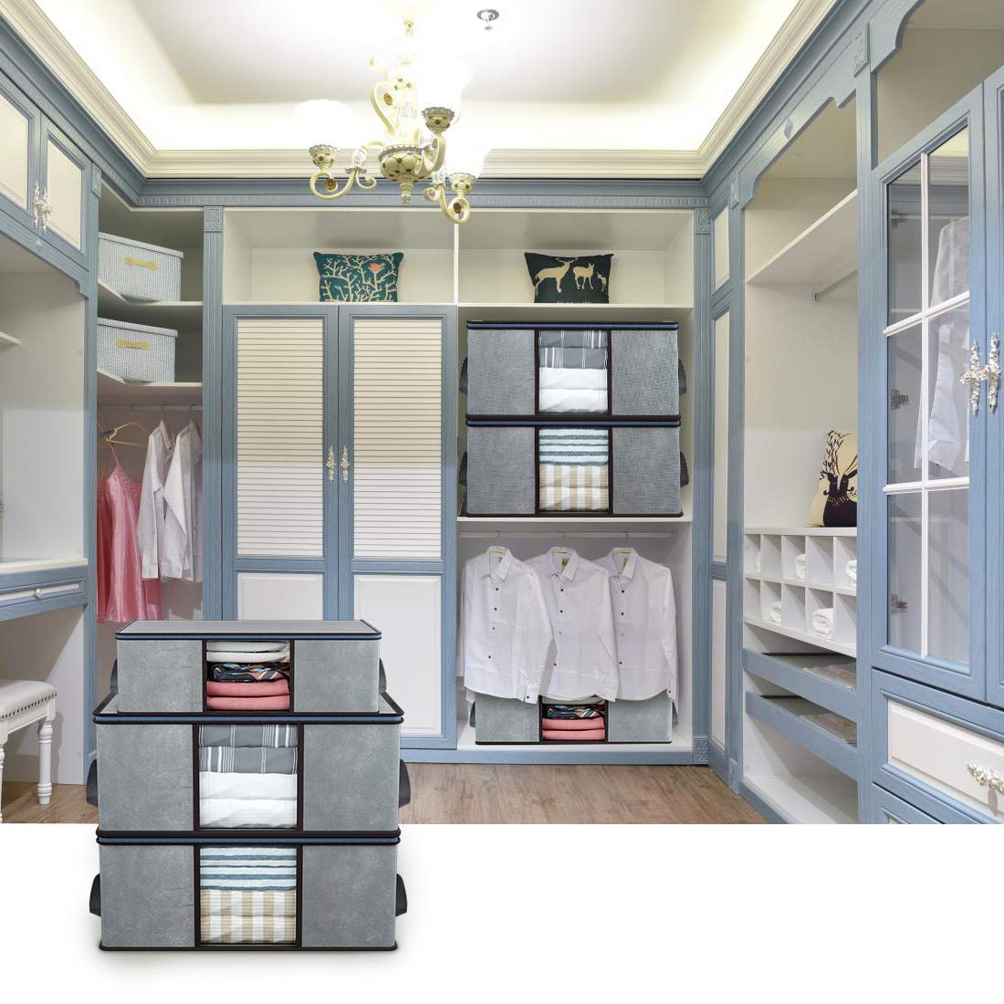 MULTIPURPOSE ORGANIZERS AND STORAGE: Appropriate for storing Garments, blankets, comforters, quilts, pillows, sweaters, garment, bedding sheets, vacation decorations, and the like. The closet organizer bag is excellent for House, dorm, bed room, basement, attic, underneath mattress Garage, and extra.