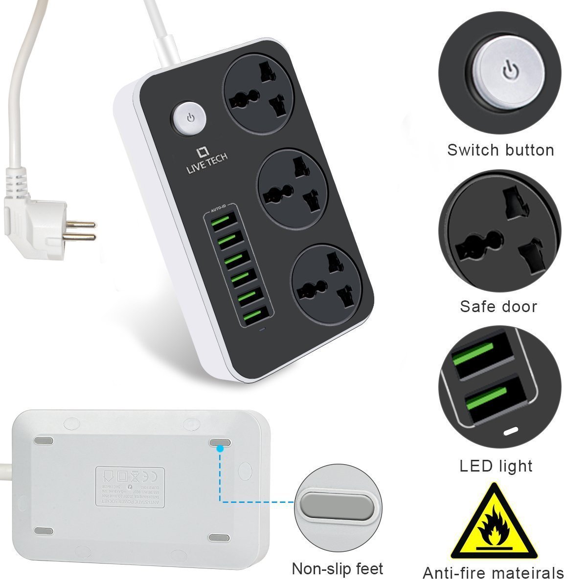 Live Tech PS06 with Free 3PC Charging Cables 6 USB 3 Universal