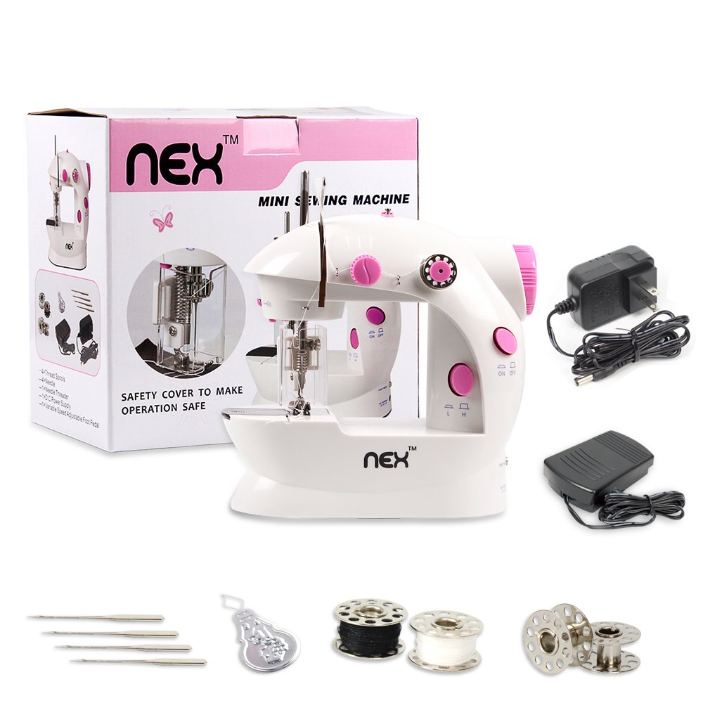 NEX Mini Stitching Device Double Pace Double Thread Family Electrical Stitching Device with Extension Desk Foot Pedal Lamp Thread Cutter Protection Duvet (NX-BSM202A), Logo: NEX