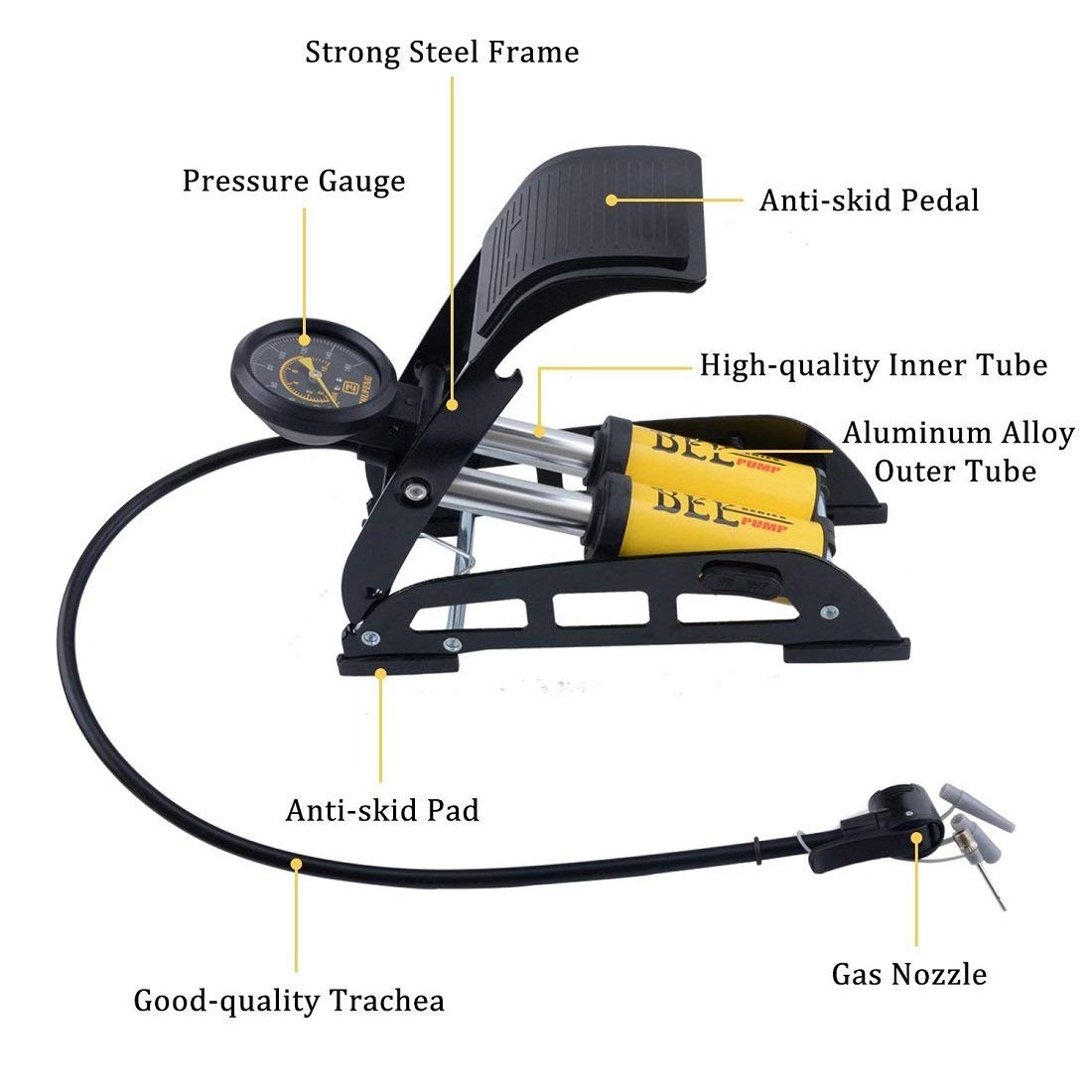 Subject matter: Aluminum Tube, Iron Base Body,Pump Weight: 3.64lb/1.65KG Top Power, Top Energy, the air pump can as much as 200 PSI (14 Bar),considerably decreasing inflation occasions